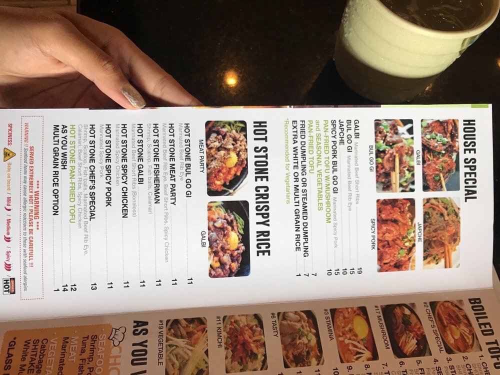 Shrimp. scallop, crab meat, calamari, marinated beef rib eye, beef short ribs and spicy chicken.